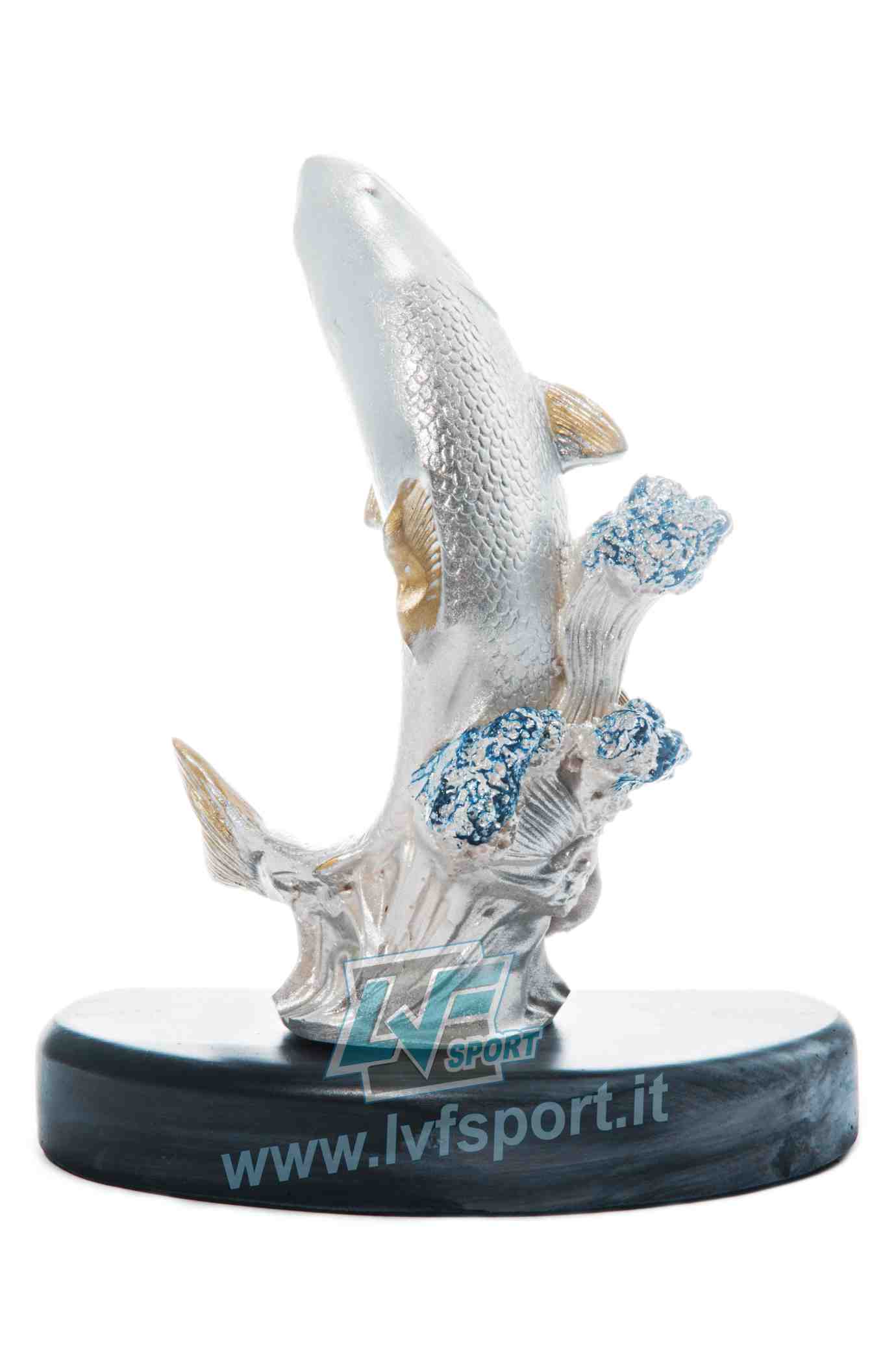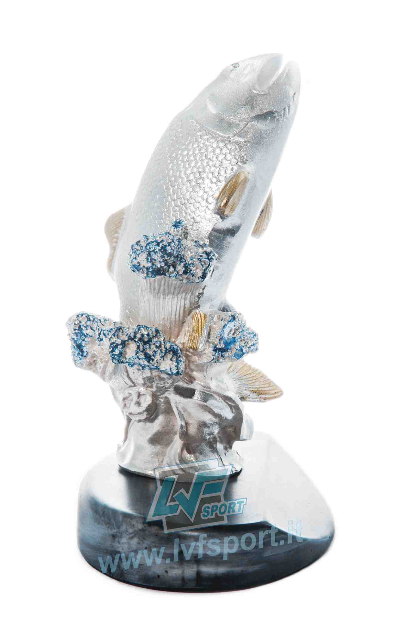 Trofeo Sportivo a tutto tondo adatto per una premiazione della pesca.L'iconografia di questo articolo è di un pesce sulla base di un'onda del mare.